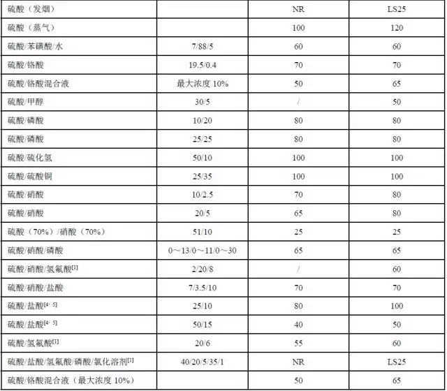 耐不了65℃以上65%~80%的中等濃度的硫酸)、